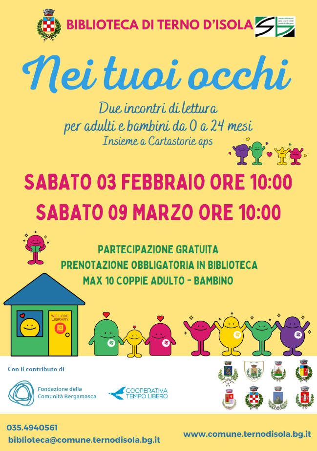 La Biblioteca di Terno d'Isola organizza due incontri di lettura per adulti e bambini da 0 a 24 mesi.